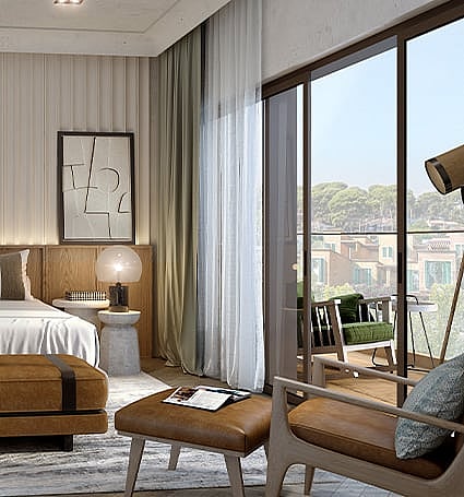 DAMAC Properties Ibiza offers 4 and 5 bedroom townhouses across multiple layouts with double-heighted ceilings that ensure the interiors are awash with natural light and imbue a distinctly Mediterranean aura. The thoughtfully designed bedrooms and modern kitchens at DAMAC Lagoons Ibiza villas add to the experience.